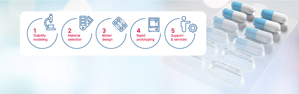 kp社はより厳格な防湿・防ガス効果を必要とする固形製剤用にPentapharm®バリアフィルムを供給しております。バリア機能が高く可塑剤無添加のフィルムで、製品を最適な状態で長期保存することを保証いたします。kpバリアフィルムは以下の特徴を有します。• 幅広い用途の蓋材に対する優れたシール性• 優れたな強度と寸法安定性、収縮を抑え、ネックダウンを最小化致しました。• 正確な指標レジスタ• 硬度に優れているため箱詰めが容易で取り扱いやすく、フィルムの外観も向上致しました。• すぐれた機械加工性によりポンド・重量当たりの歩留まりも向上致しました。※Pentapharm® は Klöckner Pentaplast GmbH & Co. KGの登録商標です。